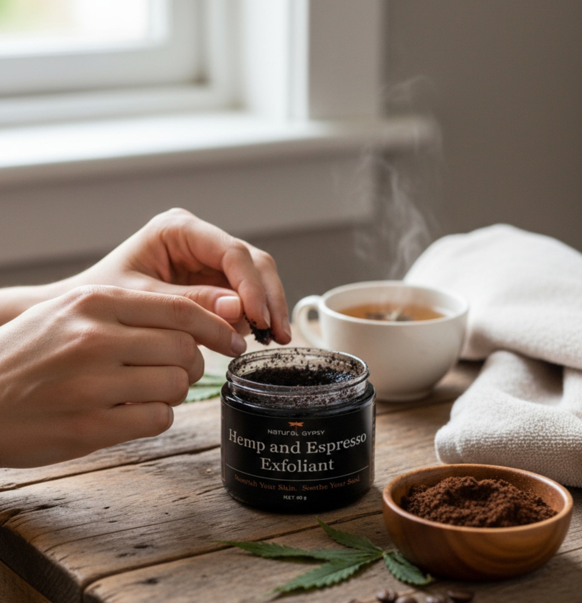 Our luxurious Hemp and Espresso exfoliant is perfect for most skin types and can be used on your face or body. Made with ground organic coffee beans, hemp powder, local honey, Kakadu Plum extract, and green clay, it is packed with antioxidants, ensuring that your skin is protected from free radical damage. Lightly scented with Basil and Patchouli essential oils, it not only smells amazing, but it also boosts your complexion.